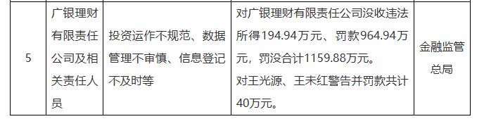 中国经济网络北京,8月2日,8月1日在州管理网站上发布的行政新闻惩罚清单,于8月1日在州监督和管理网站上为州监督和管理,为州监督和管理,广播公司财富管理有限公司,有限公司,表明相关经理具有不规则的投资管理,非理性数据管理和临时信息记录。州政府对金融法规没收了19.494亿非法收入,并罚款96.494亿元,没收了1,159.88亿元人民币。中间国王和赫恩国王的国王被警告和罚款,总计40万元人民币。原始文本如下所示。