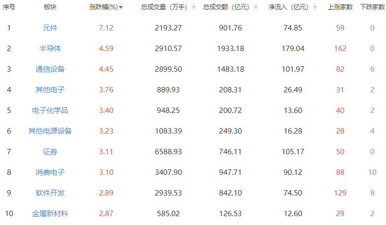 中国经济网北京9月11日新闻新闻在下午两个城市继续加强自己。最后,上海化合物指数为3,875.31分,增长了1.65%,销售额为1016.794亿元。深圳化合物指数为12,979.89点,增长了3.36%,销售额为1925亿元人民币。 Chinext指数为3,053.75点,增长了5.15%,销售额为69,8915亿元人民币。它被归类为工业部门,组件,半导体,通信设备和其他部门的利润,但是贵金属,采矿和石油和天然气服务,电影和电视剧院以及其他部门的下降已分类。甚至分类者和落在A-CARPART的市场领域